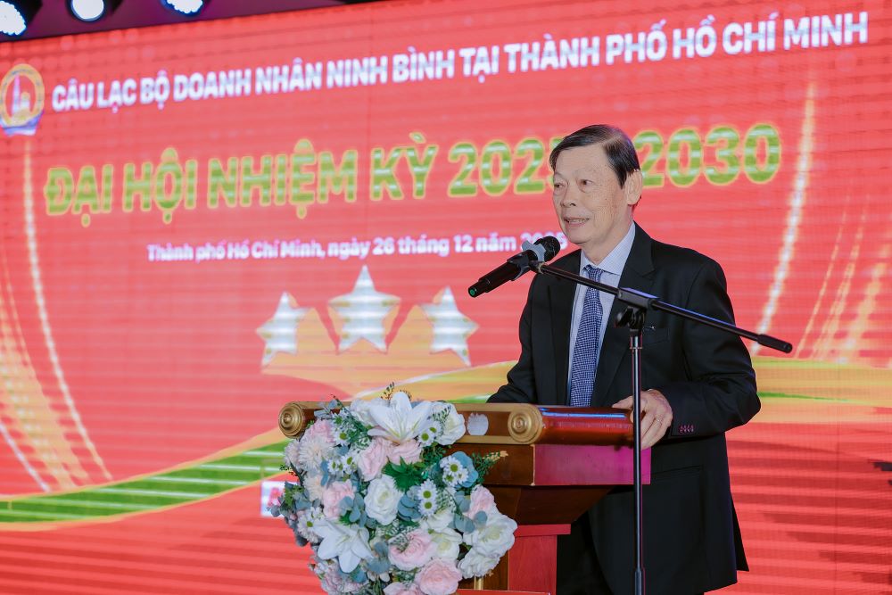 Phát biểu tại Đại hội, Ông Mai Thanh Long – Tỉnh ủy viên, Phó Chủ tịch Hội đồng Nhân dân tỉnh Ninh Bình chúc mừng Đại hội nhiệm kỳ 2025–2030 của Câu lạc bộ Doanh nhân Ninh Bình tại TP. Hồ Chí Minh được tổ chức thành công tốt đẹp. Ông đánh giá cao vai trò của Câu lạc bộ trong việc tập hợp, kết nối đội ngũ doanh nhân đồng hương đang sản xuất – kinh doanh tại TP. Hồ Chí Minh và các tỉnh phía Nam, qua đó góp phần lan tỏa hình ảnh doanh nhân Ninh Bình bản lĩnh, trách nhiệm và giàu tinh thần cống hiến.